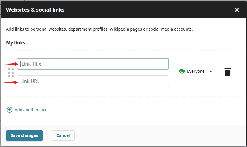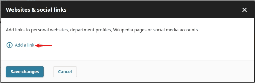 Sitios web y enlaces sociales: En este campo se puede agregar la información relacionada con las redes sociales que posee el investigador, ya sean personales o institucionales ej. Facebook, Google Scholar, entre otros.