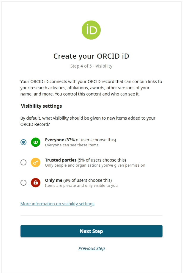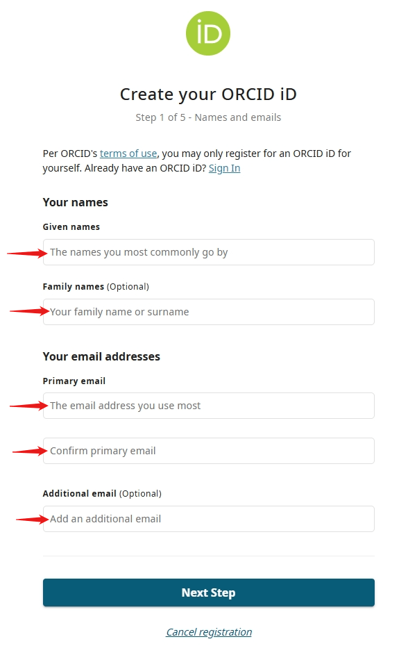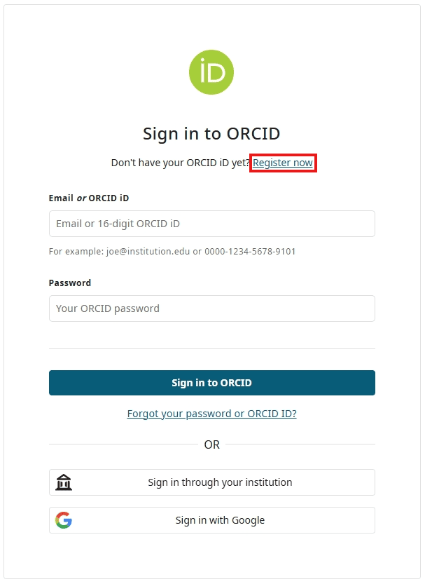 Para obtener un identificador ORCID es necesario registrarse haciendo clic en el siguiente enlace: